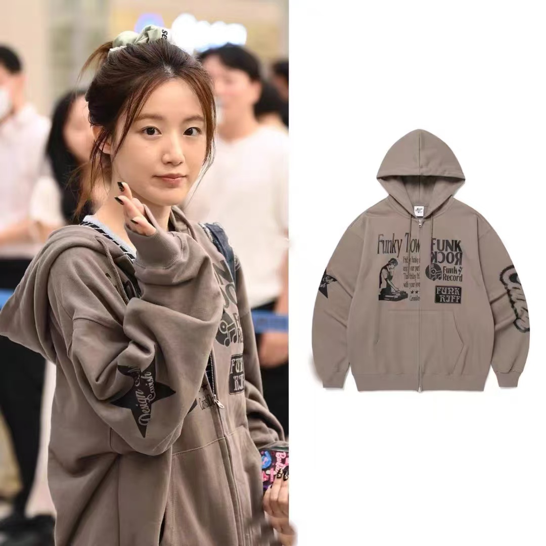 • Idol Style Reference:Inspired by GIDLE member SHUHUA's airport look, this taupe hoodie helps you replicate her laid - back yet trendy vibe.