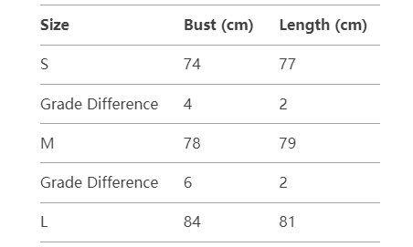 Every product page includes a detailed size chart for accurate measurements.