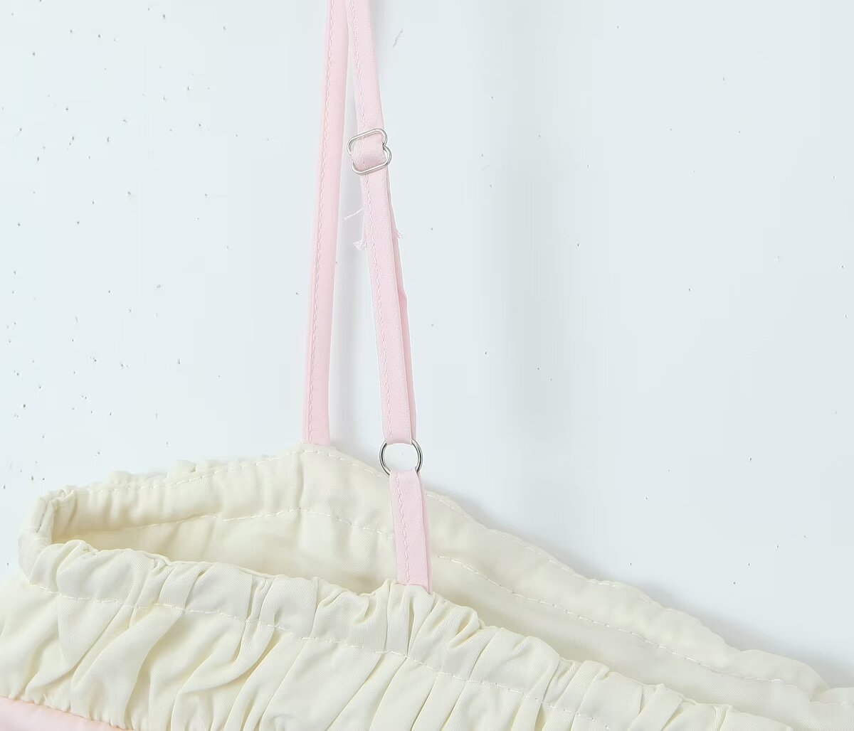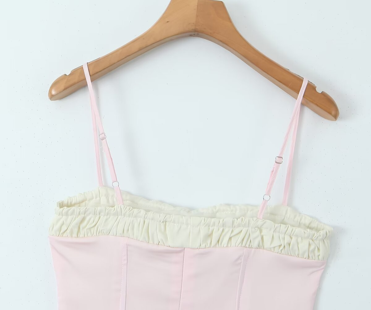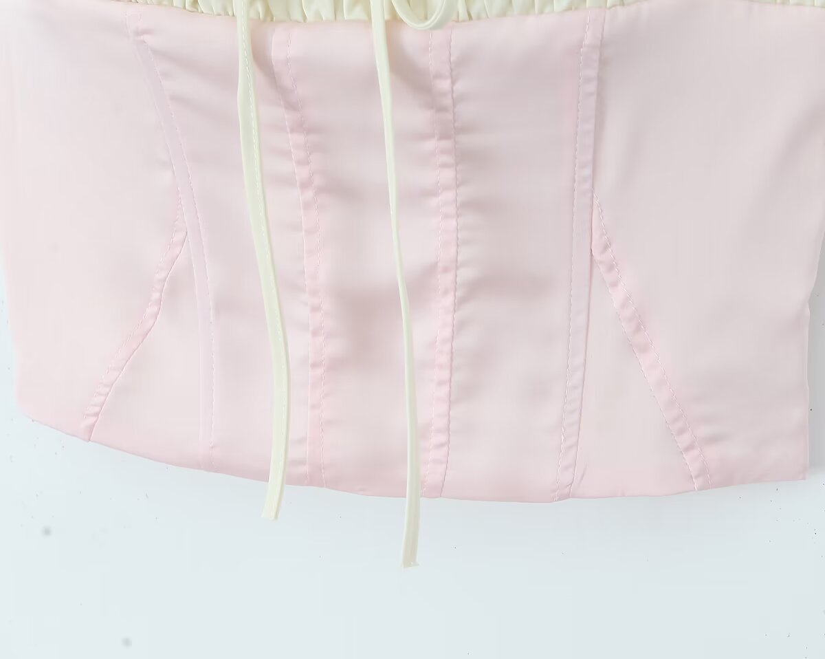 The charming blend of soft pink and creamy white hues gives it a dreamy look. The ruched chest detail not only adds texture but also flatters your silhouette, while the lace - up front brings a trendy, playful edge.
