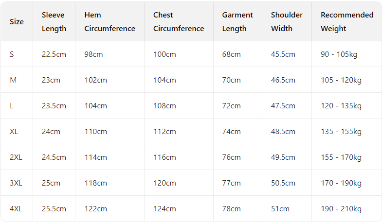 Every product page includes a detailed size chart for accurate measurements.