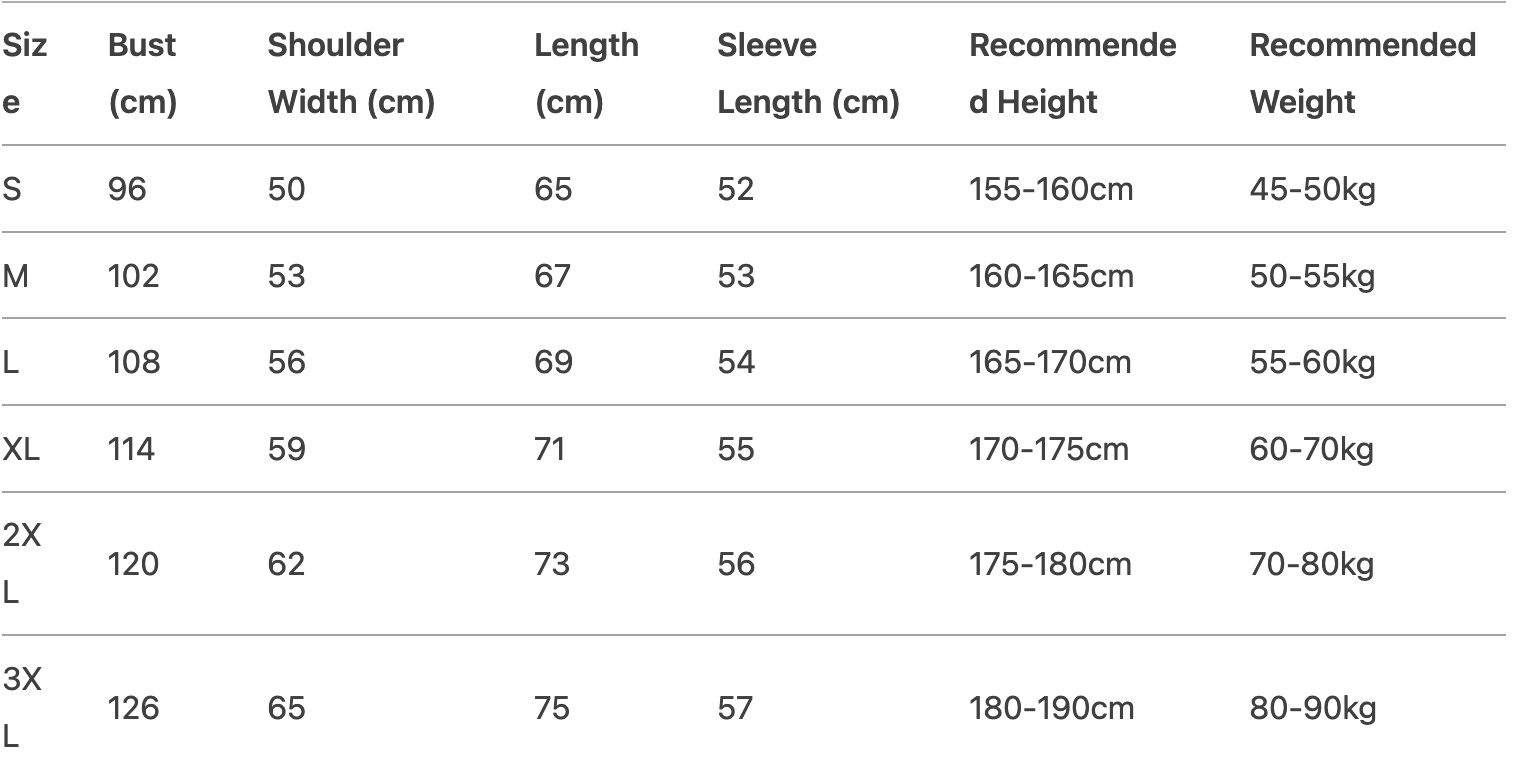 Every product page includes a detailed size chart for accurate measurements.