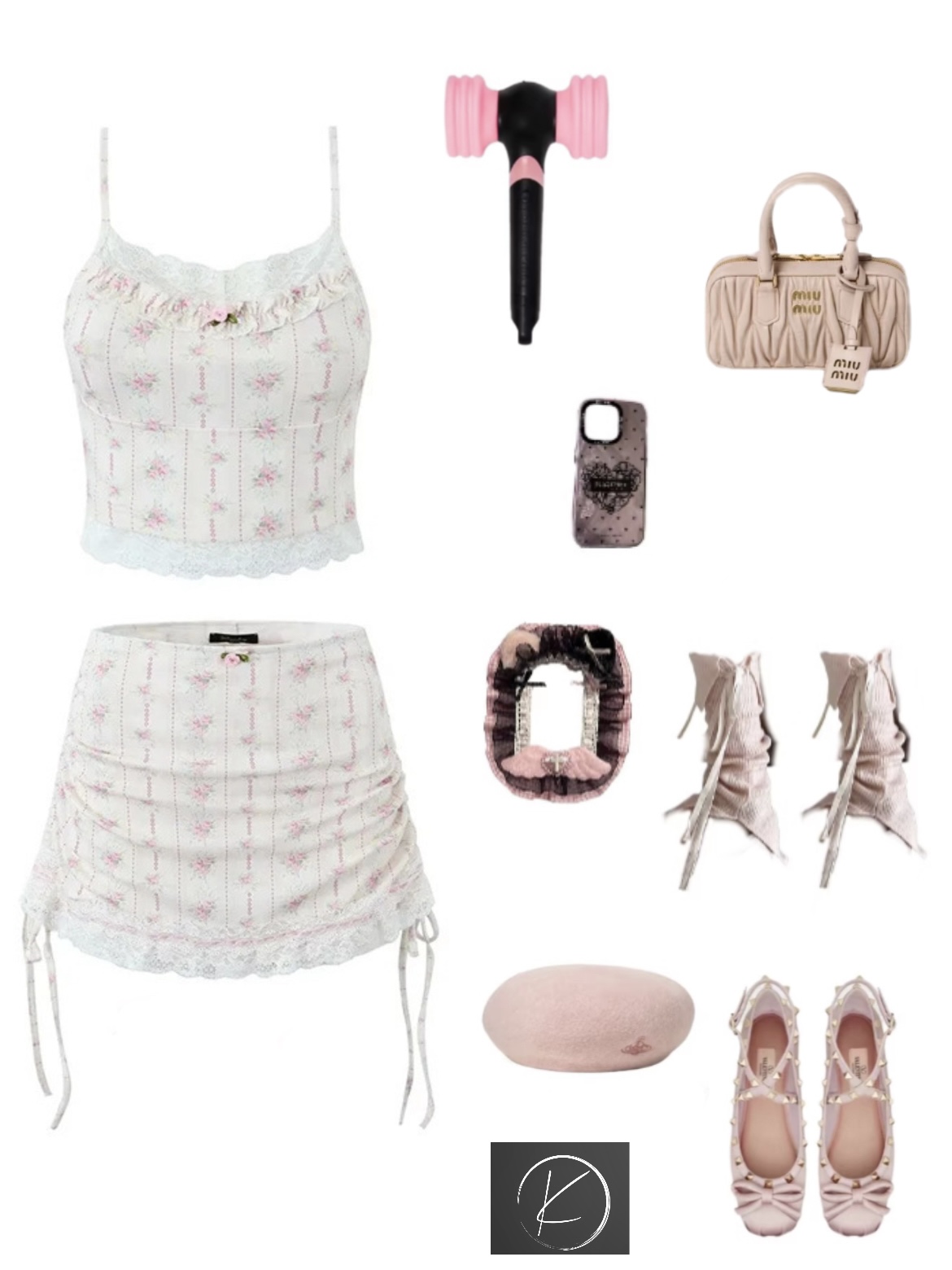 If you're headed to a night event, switch to strappy high - heels and a sleek clutch. Throw on a leather jacket to add an edgy contrast to the otherwise sweet ensemble. This set is your ticket to nailing that BLACKPINK - inspired fashion that's both chic and full of personality.