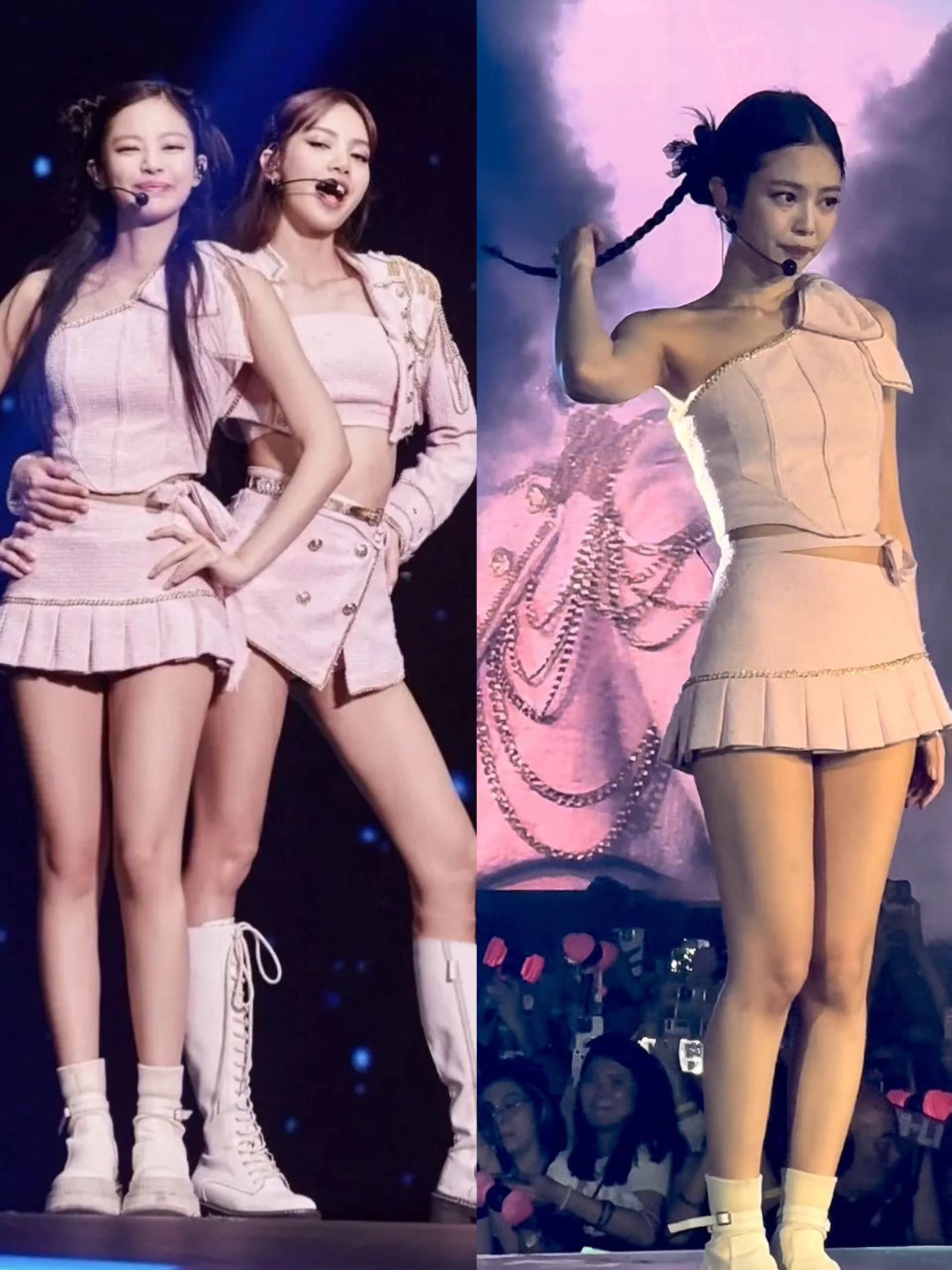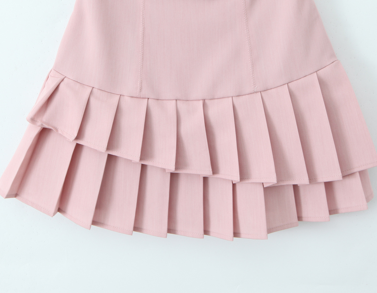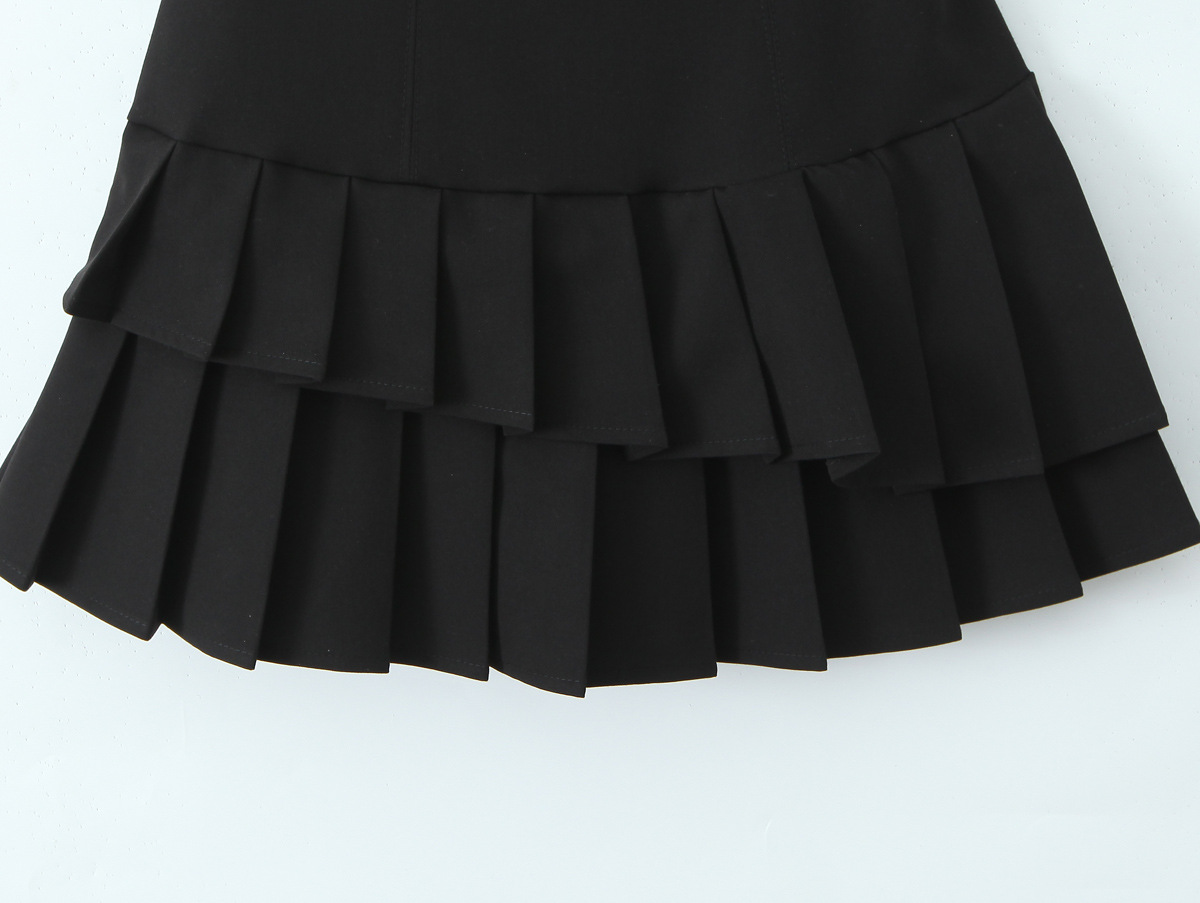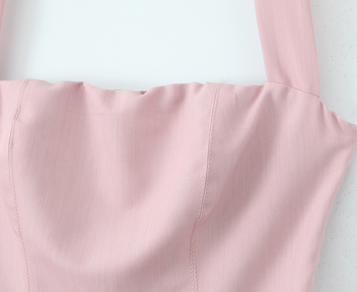 The hanging neckline elegantly frames your shoulders, while the backless design adds a touch of allure. The pleated skirt creates a playful, dynamic silhouette. Embrace the BLACKPINK - inspired style and shine bright!