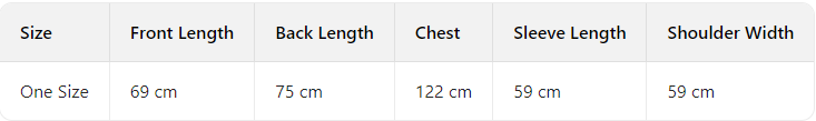 Every product page includes a detailed size chart for accurate measurements.