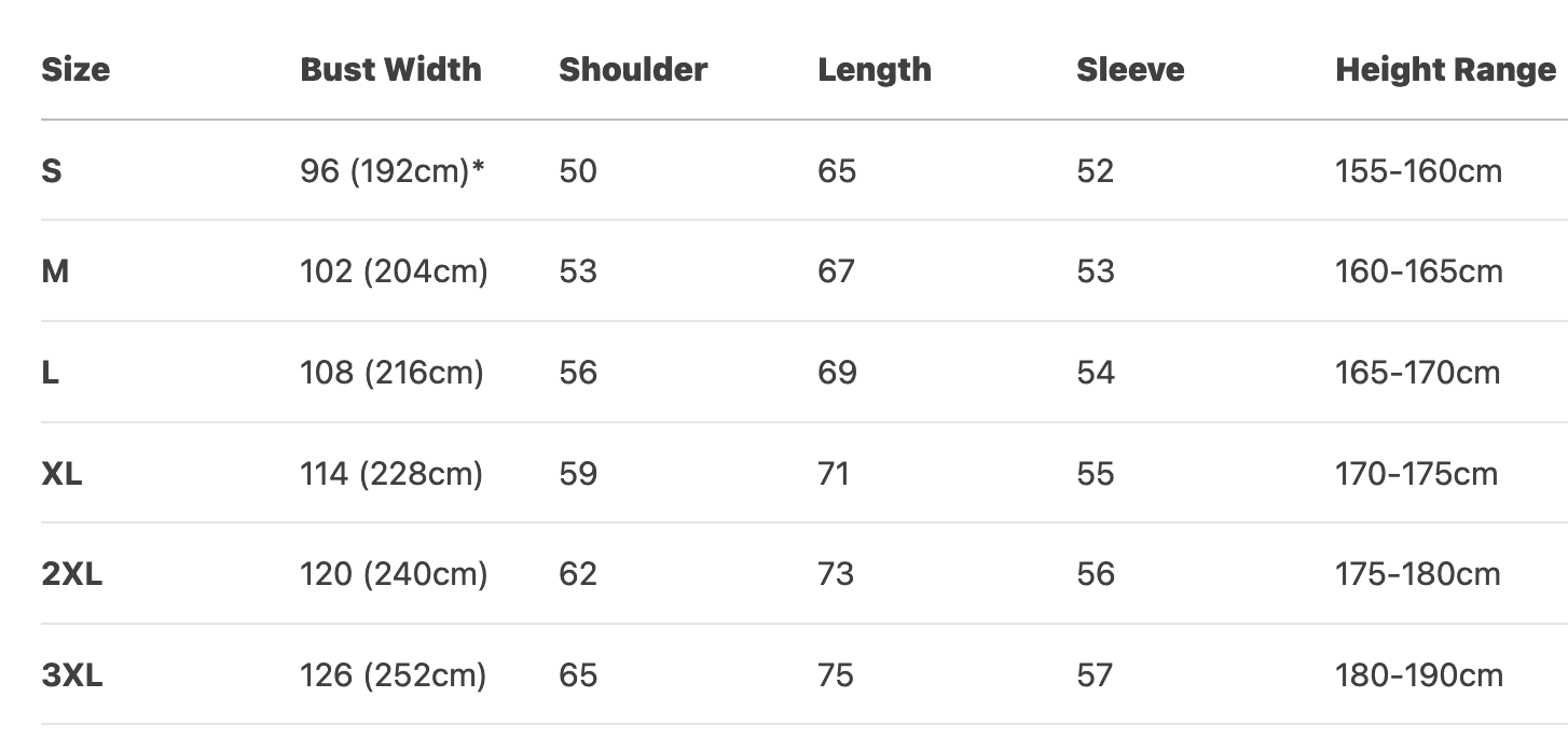 Every product page includes a detailed size chart for accurate measurements.