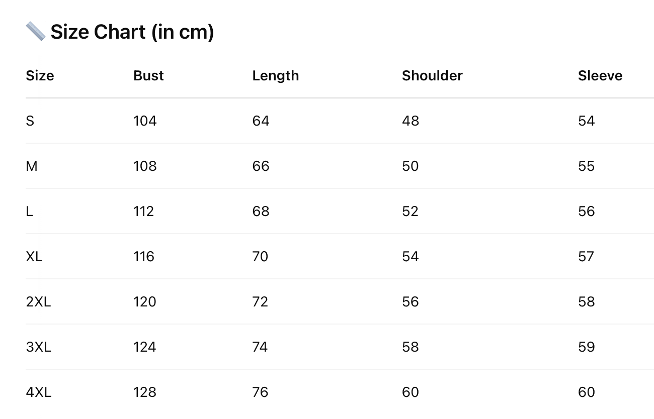 Every product page includes a detailed size chart for accurate measurements.