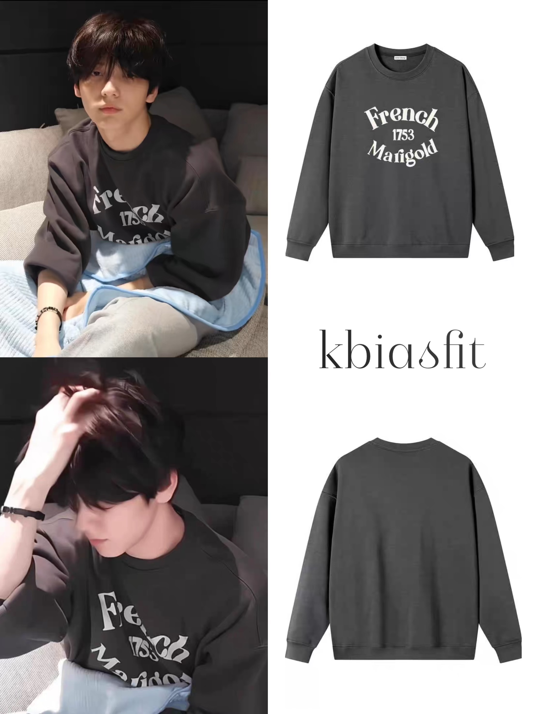 • Match TXT Soobin’s laid - back look with this “French Marigold 1753” graphic sweatshirt.