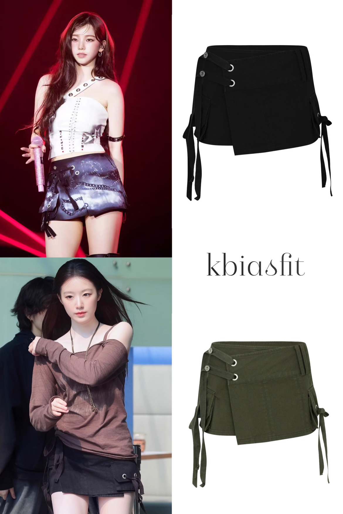 Step into the spotlight with this K-pop idol inspired buckle cargo skirt — the exact edgy-chic look seen on aespa’s Karina and (G)I-DLE’s Shuhua. Designed to blend utility and style, this skirt brings attitude to every step.
