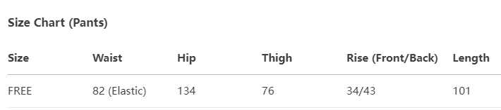 Every product page includes a detailed size chart for accurate measurements.