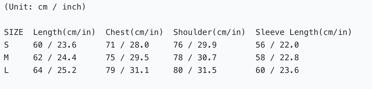 size chart