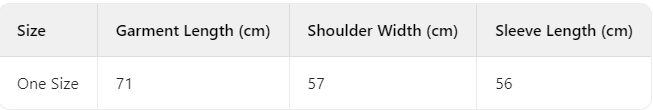 Every product page includes a detailed size chart for accurate measurements.