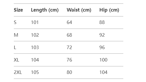 Every product page includes a detailed size chart for accurate measurements.
