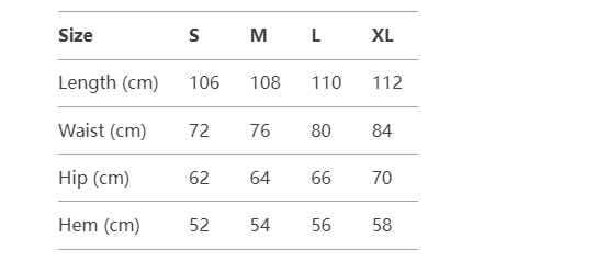 Every product page includes a detailed size chart for accurate measurements.