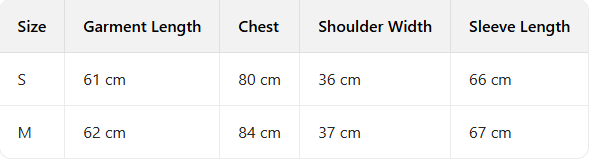 Every product page includes a detailed size chart for accurate measurements.