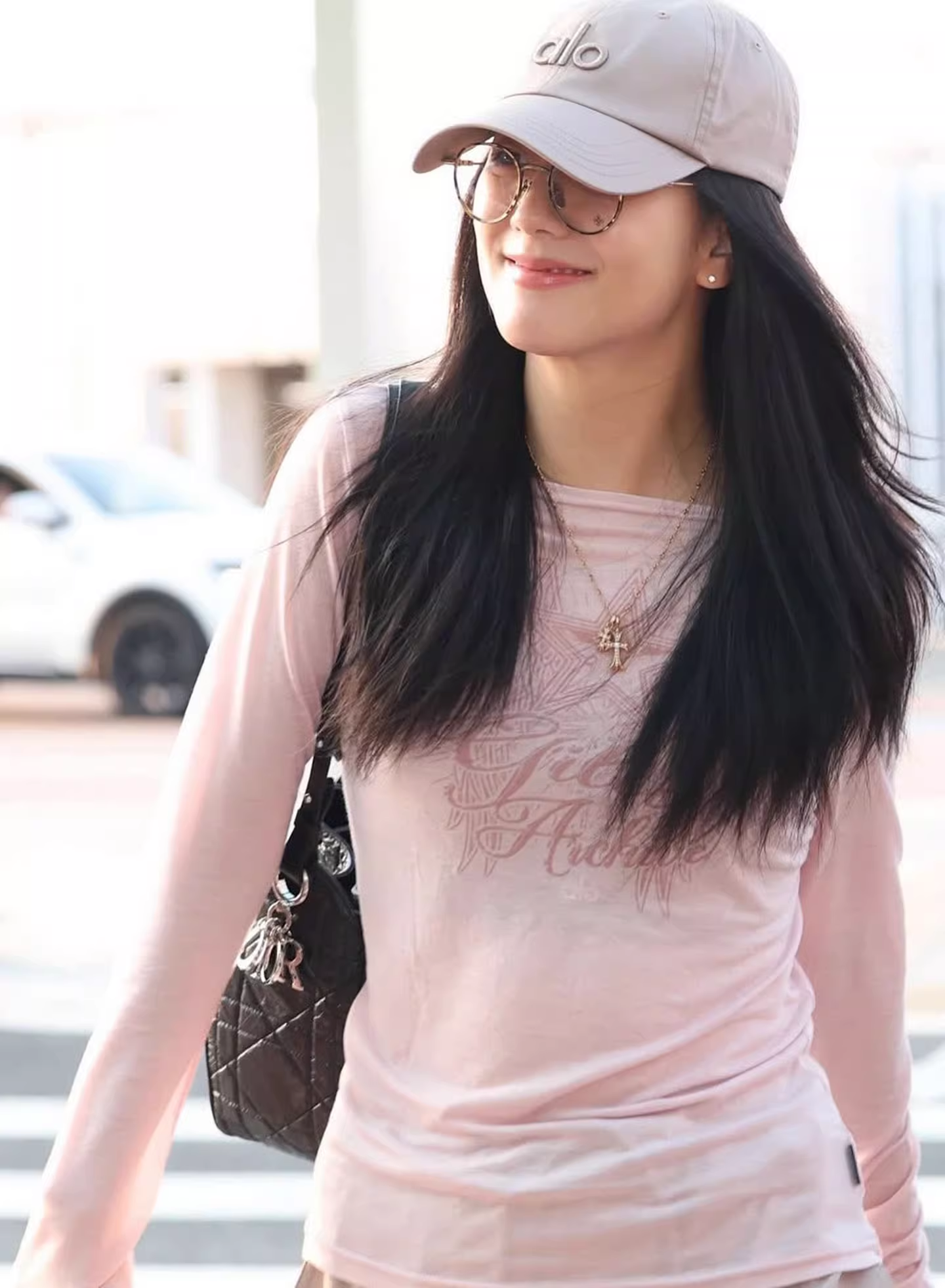 • Design:This sheer long-sleeve top comes in a charming light pink color. The front features an exquisite print combining a star with wings. The design is both dreamy and stylish, echoing Jisoo's elegant and cute fashion sense.