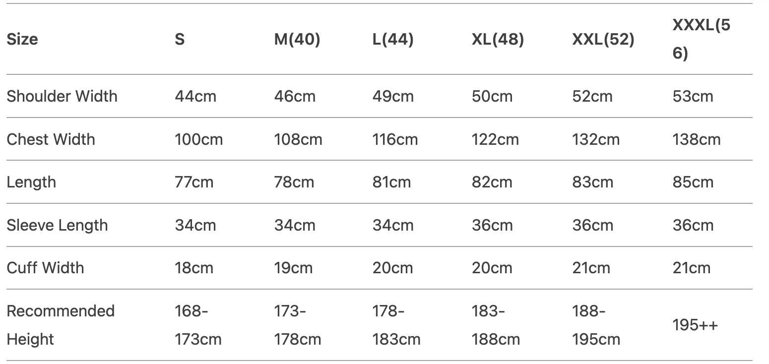 Every product page includes a detailed size chart for accurate measurements.