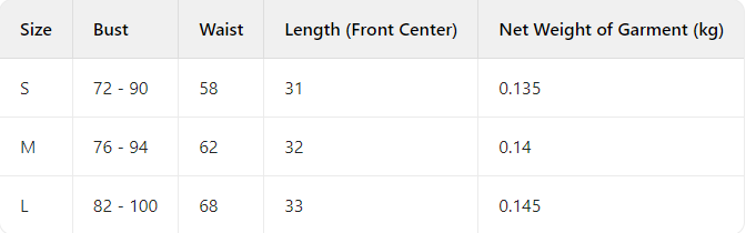 Every product page includes a detailed size chart for accurate measurements.