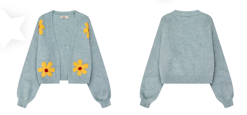 Aespa Winter Inspired Flower Embroidered Knit Cardigan