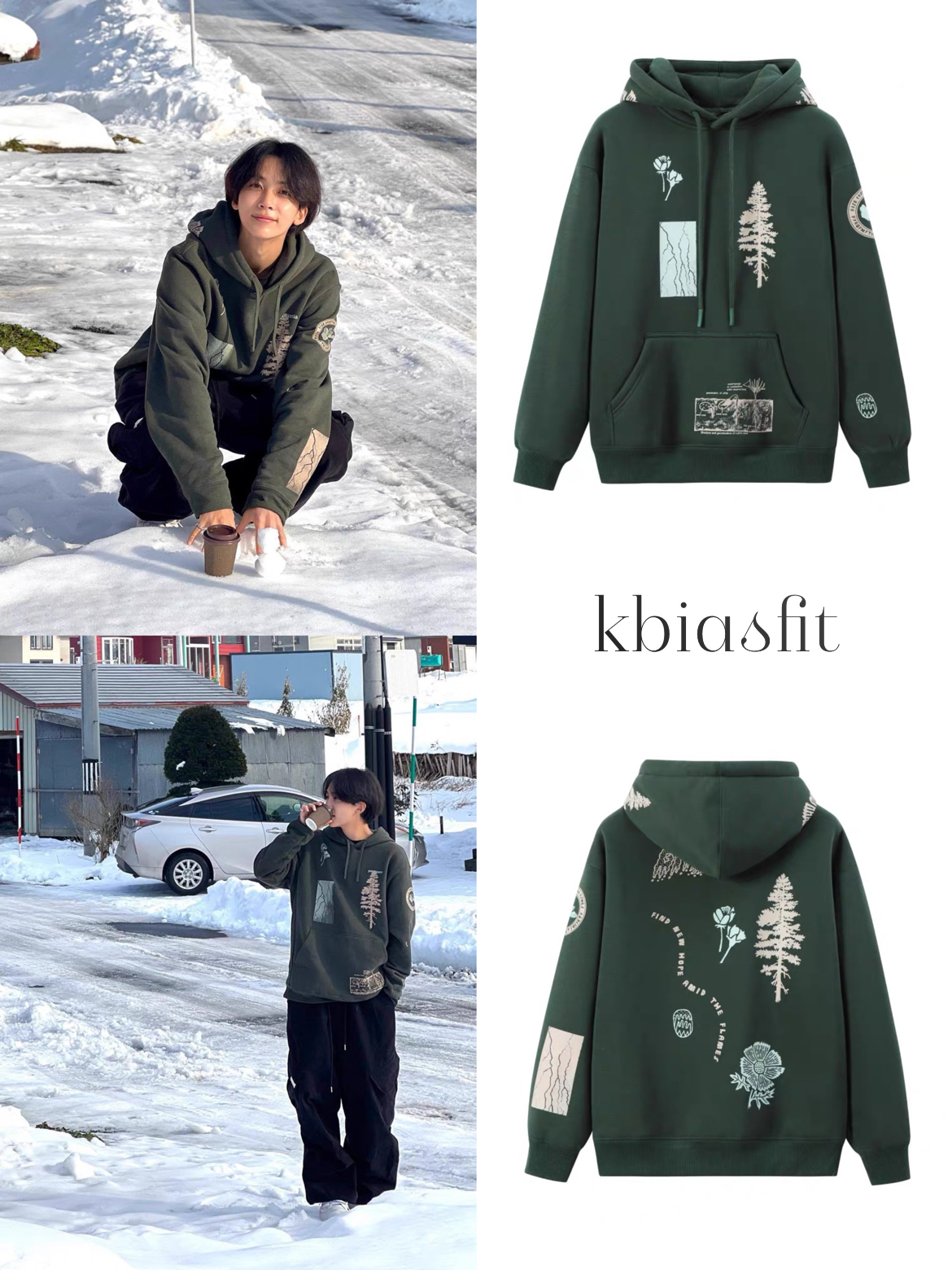 Seventeen Jeonghan Inspired Forest-Print Green Hoodie