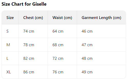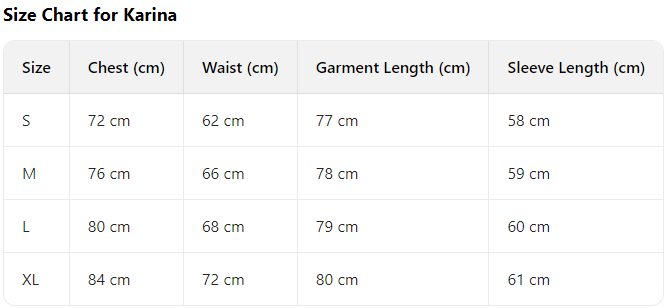 Every product page includes a detailed size chart for accurate measurements.