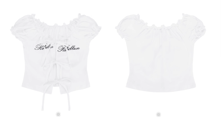 • Top: 95% cotton + 5% spandex | Romantic tie-front | Elastic puff sleeves