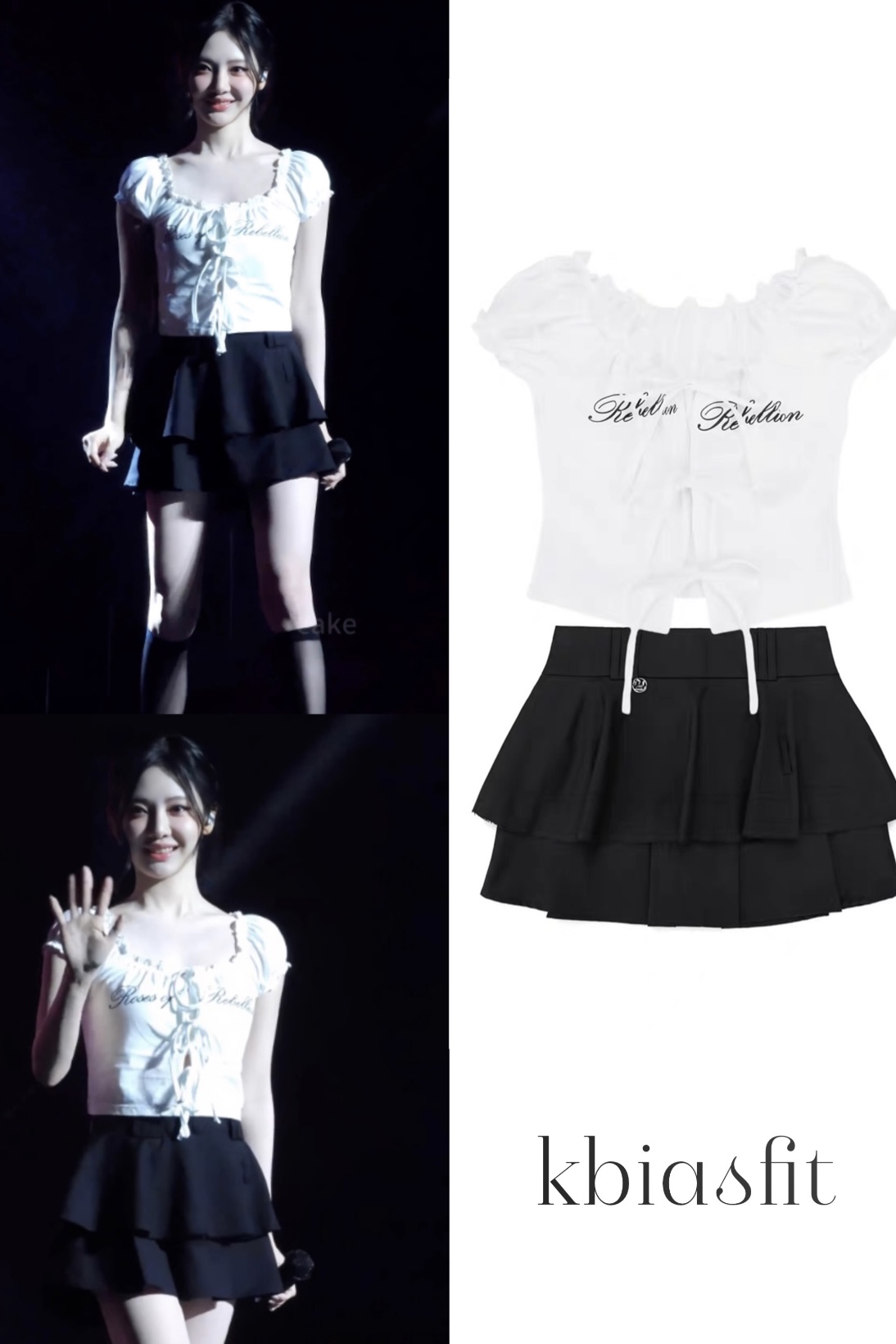 Ruffled Tie-Front Top & Flounced Mini Skirt - Ningning Style | Aespa Fashion