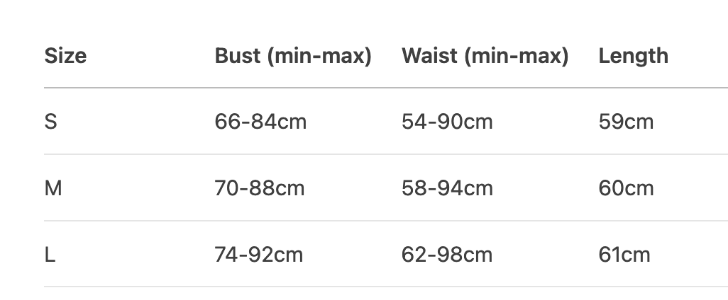 Every product page includes a detailed size chart for accurate measurements.