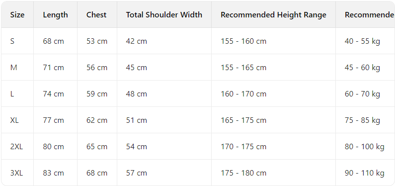 Every product page includes a detailed size chart for accurate measurements.