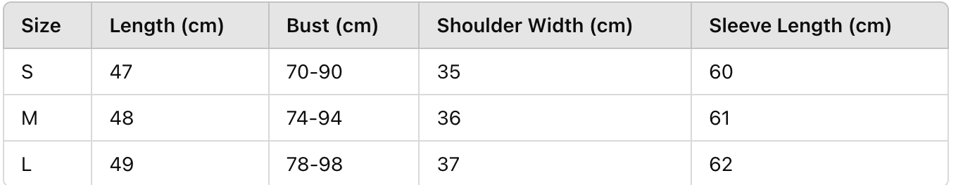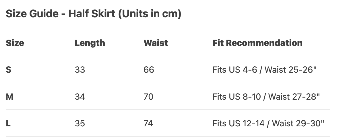 Every product page includes a detailed size chart for accurate measurements.