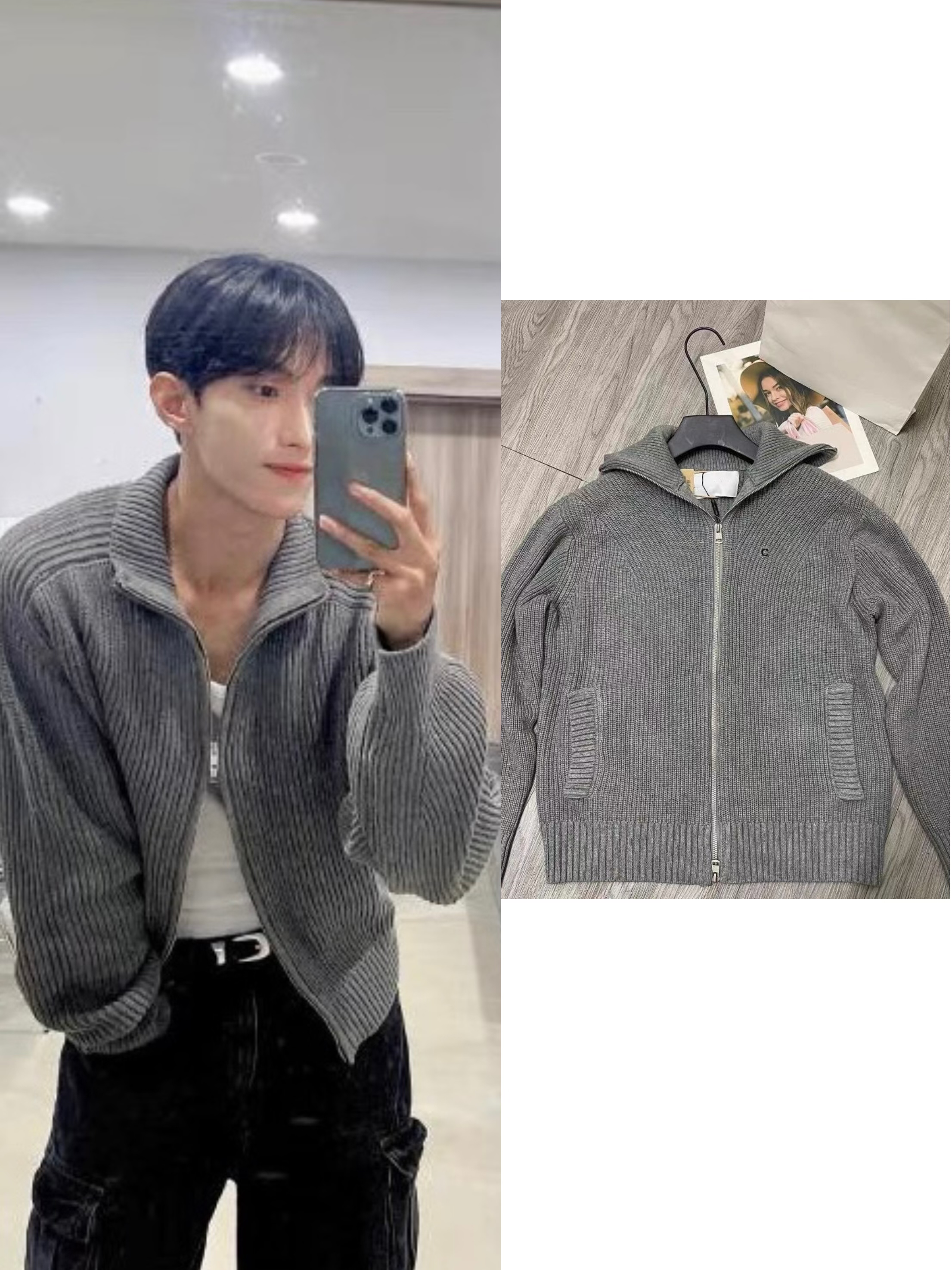 • Design: A zip - up knit cardigan featuring a stand - up collar and ribbed detailing, echoing the style worn by Seventeen’s DK. The relaxed silhouette offers a casual yet fashionable appeal.