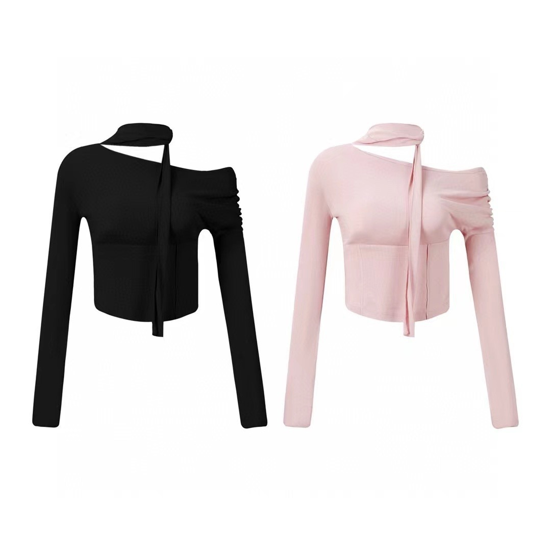 Slant Shoulder Neck Slimming Long Sleeve Top-Straykids concert outfitidea for STAY
