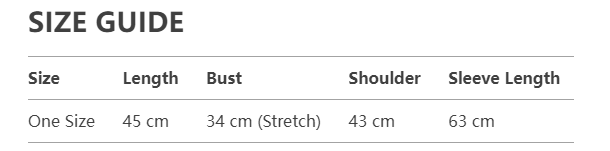 Every product page includes a detailed size chart for accurate measurements.