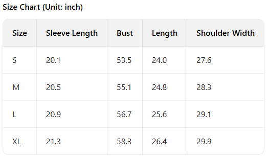 Every product page includes a detailed size chart for accurate measurements.