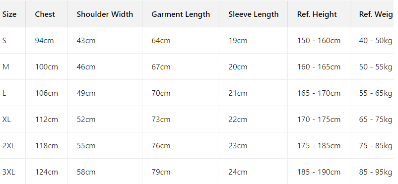 Every product page includes a detailed size chart for accurate measurements.