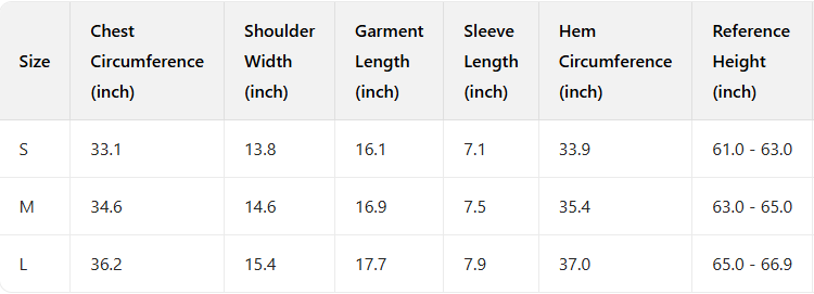 Every product page includes a detailed size chart for accurate measurements.
