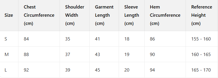 Cropped Size Chart