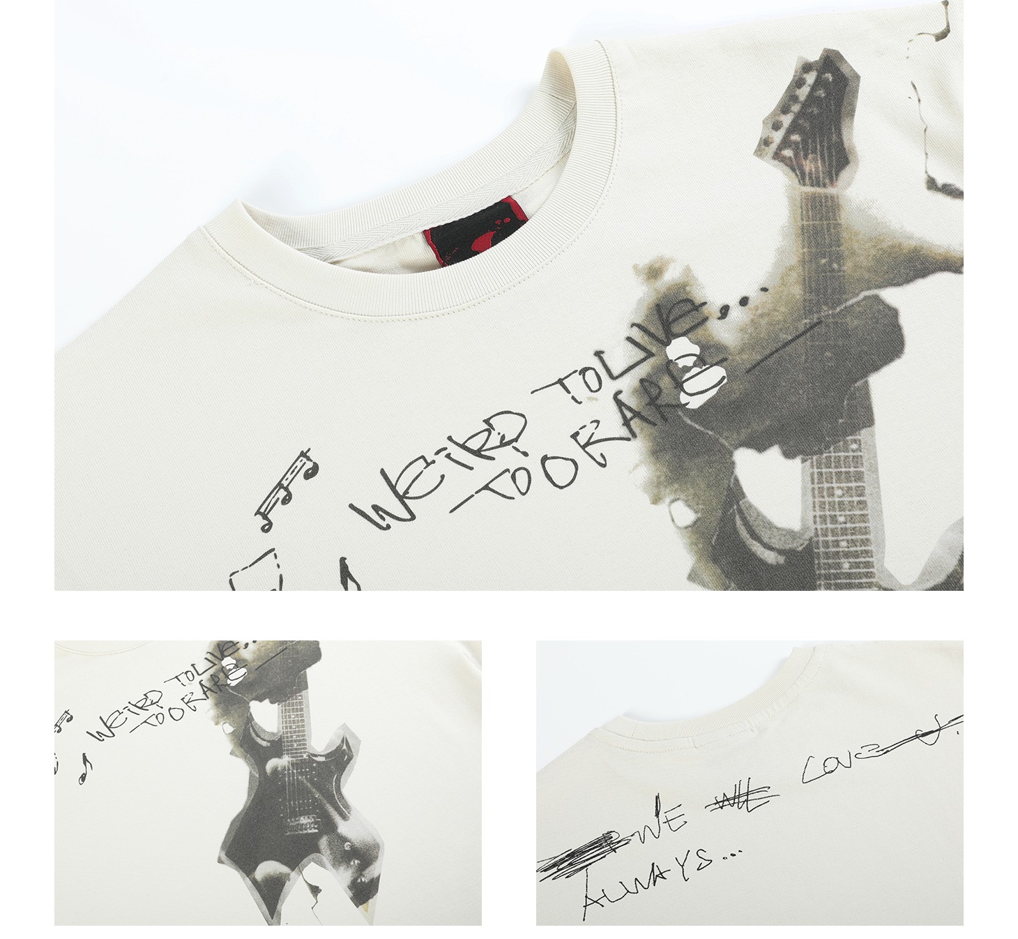 Y2K Vintage Burned Guitar Graphic Tee - 260GSM Oversized Streetwear T-Shirt (Y2K Punk Rock Unisex Top)