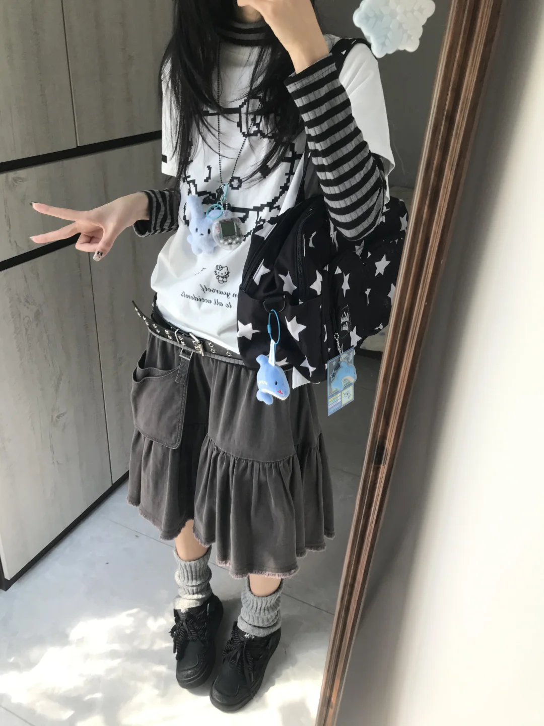 Y2K Hello Kitty Graphic Print Asymmetrical Crop shirt