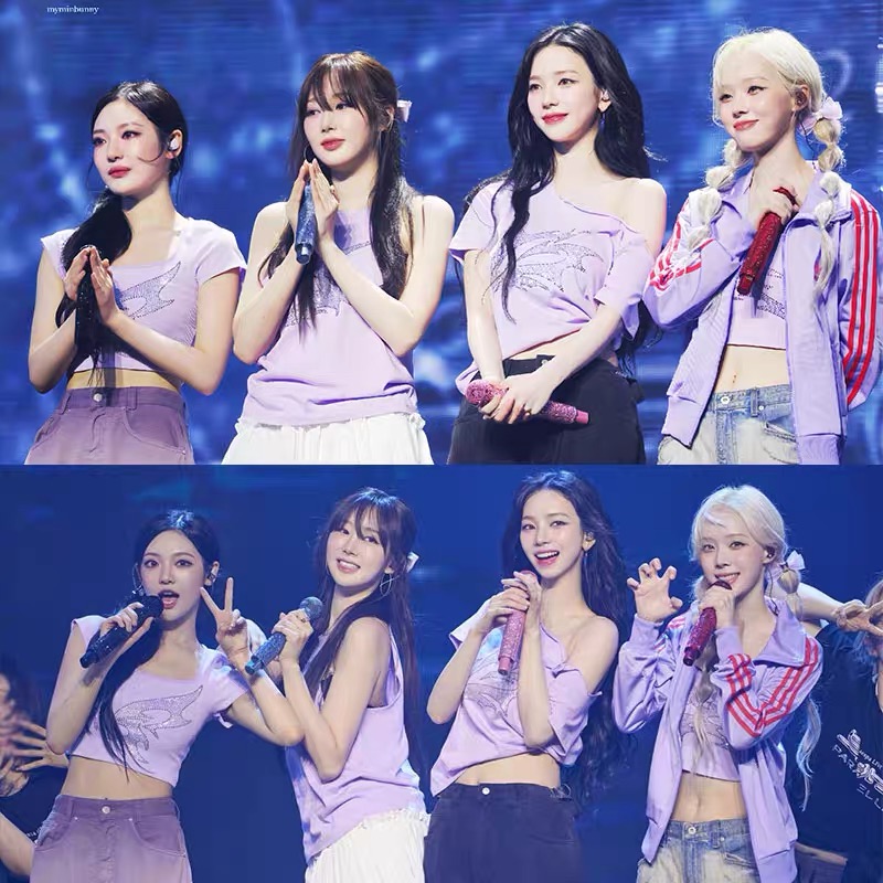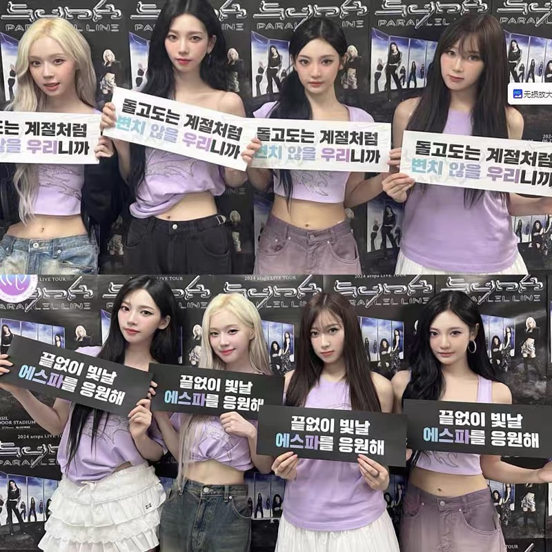 Rep your love for aespa's "Synk : Parallel Line" live tour! These tees, inspired by their stage looks, come in purple & black. Soft, breathable fabric for comfort. Perfect for concerts, fan meets or daily K - pop fits. Grab yours to sync with aespa's energy!