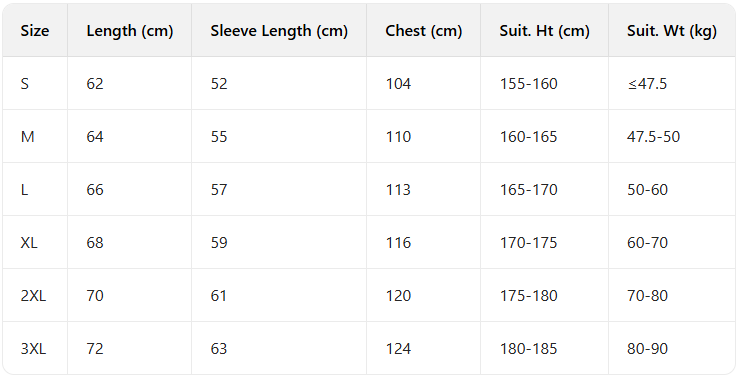 Every product page includes a detailed size chart for accurate measurements.