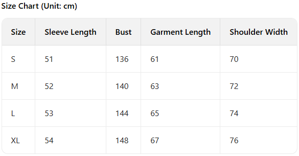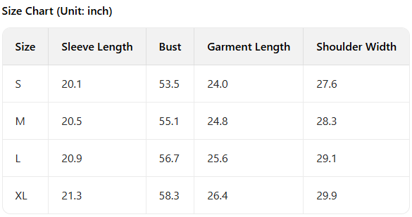 Every product page includes a detailed size chart for accurate measurements.