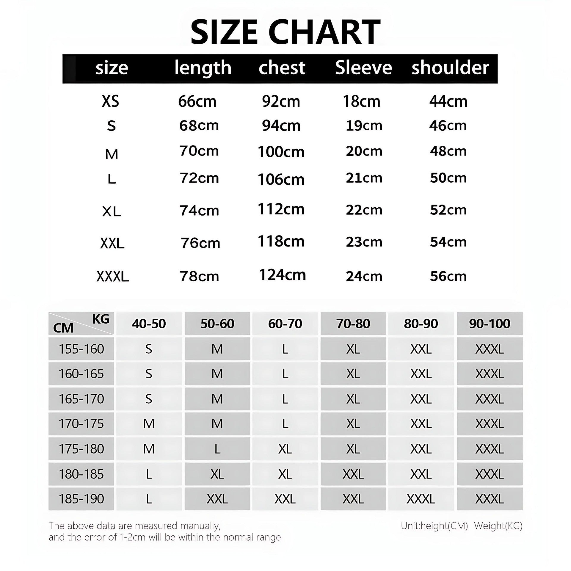 Every product page includes a detailed size chart for accurate measurements.