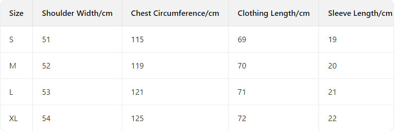 Every product page includes a detailed size chart for accurate measurements.