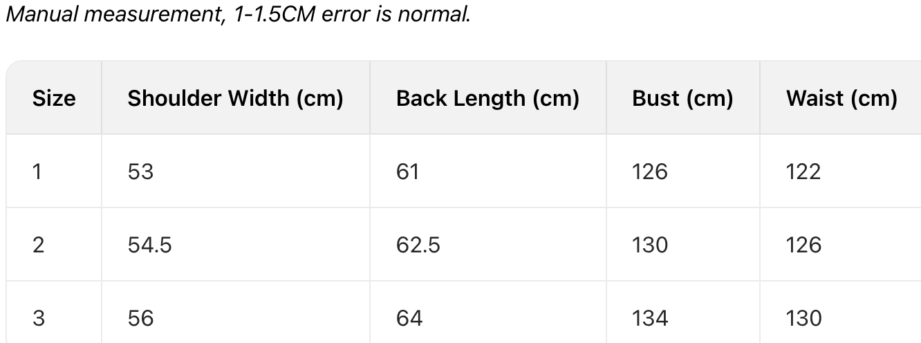 SIZE CHART- Jacket (Unisex)