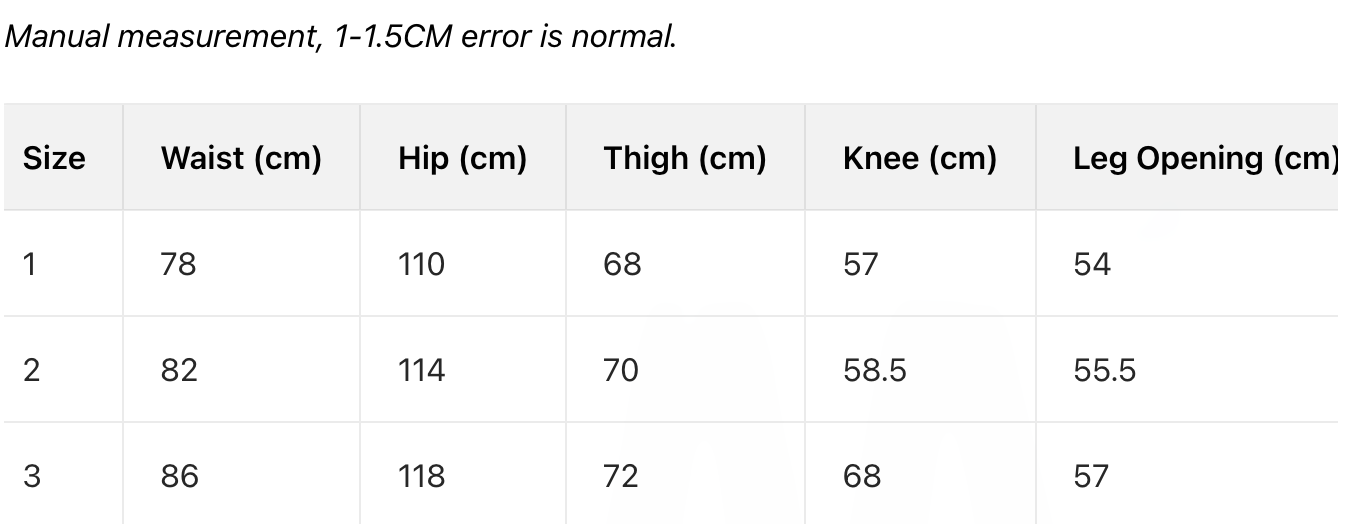 SIZE CHART- Pants (Unisex)