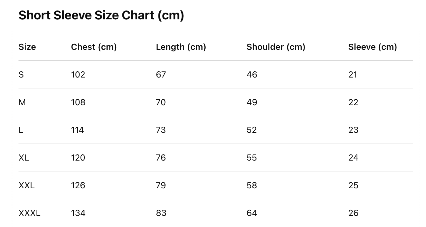 Every product page includes a detailed size chart for accurate measurements.