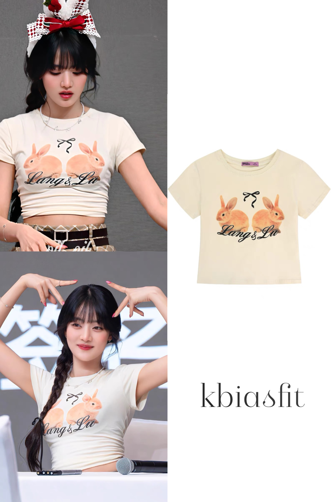This stretchy fitted tee brings Minnie's signature cute-sexy vibe to your wardrobe. The soft cotton-blend fabric moves with you while the playful bunny graphic adds just the right amount of Kpop flair.