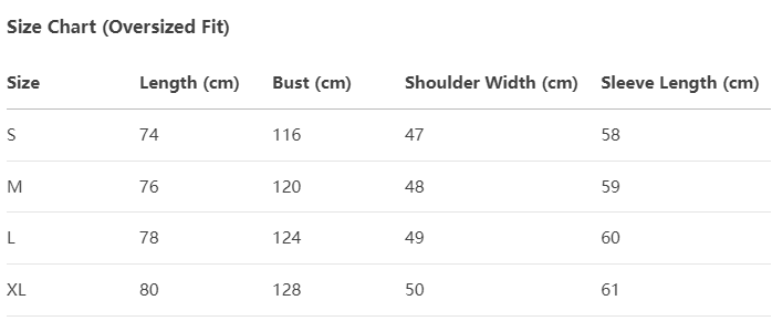 Every product page includes a detailed size chart for accurate measurements.
