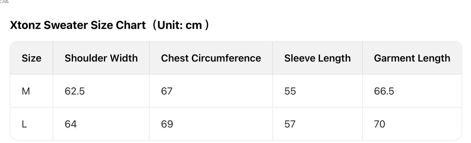 Every product page includes a detailed size chart for accurate measurements.
