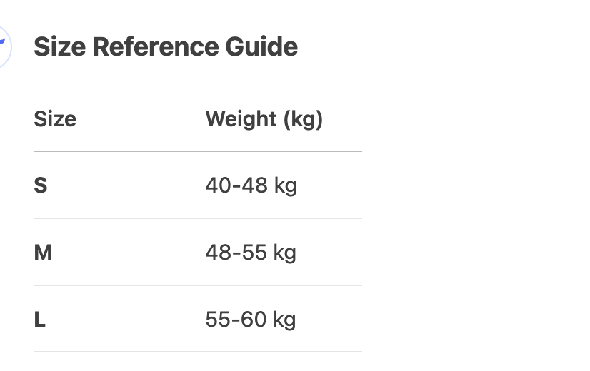 Every product page includes a detailed size chart for accurate measurements.